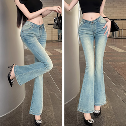 Runwayover กางเกงยีนส์ R616ย้อนยุค, กางเกงยีนส์มิดิบานกว้าง