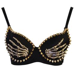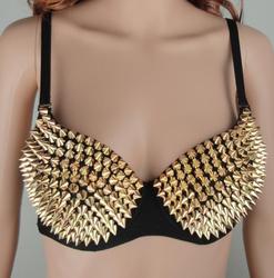 D.Y เสื้อบราเซ็กซี่มีหมุดสีทองแฟชั่นปี M813,เสื้อชั้นในทรงแหลมแบบกอธิคประดับหมุดแนวพังก์ชุดนักเต้นระบำเปลื้องผ้าเซ็กซี่คอลเลกชันกลางคืนปี2016