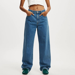 Runwayover กางเกงยีนส์ R615ย้อนยุค, กางเกงยีนส์มิดิบานกว้าง